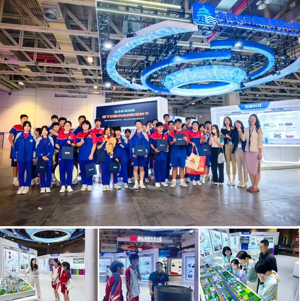 在展会的公众开放日,澳门多所学校的中小学生来到北控水务集团展位参观,学习水污染治理与水生态保护方面的知识,了解北控水务集团在水务与环保领域的全球化布局和引领性贡献。讲解员重点介绍了集团多年产教融合的实践经验,以及实现教育链、产业链、供应链、人才链与价值链有机衔接的重要举措。