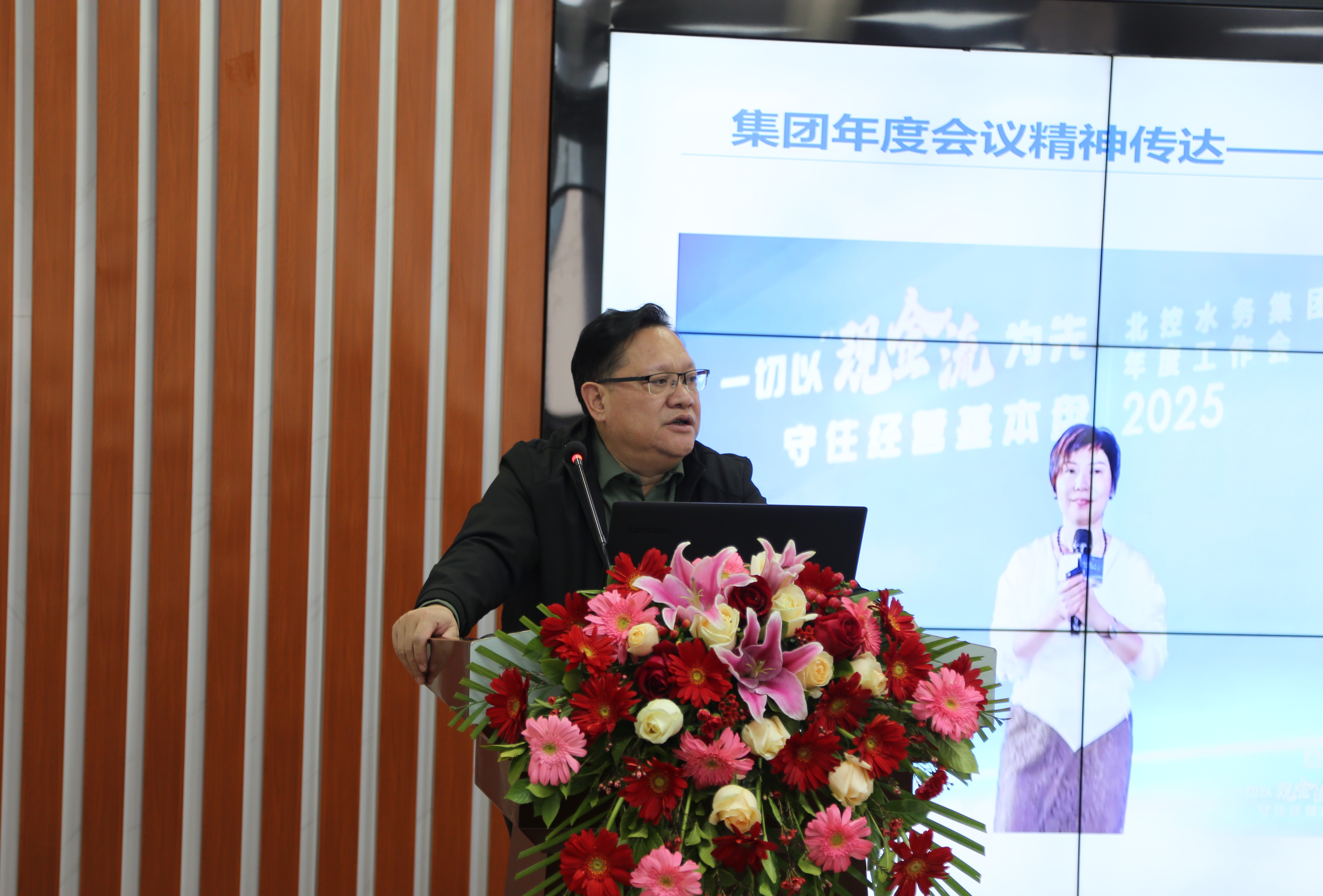 集团供水事业部高级总监黄贵新围绕集团“一切以现金流为先,守住经营基本盘”年会主题,为大家传达分析了集团年会精神,对集团年度工作会提出的“三大工作重点及十二项核心举措”进行了细致解读,对南宁水务公司提出的2025年提效增质改善现金流经营策略充分认同,勉励公司全体员工不畏困境,在新的领导班子带领下,坚定信心,保持韧性,共同推动南宁水务公司不断向上向好发展,助力集团各项战略目标圆满完成。
